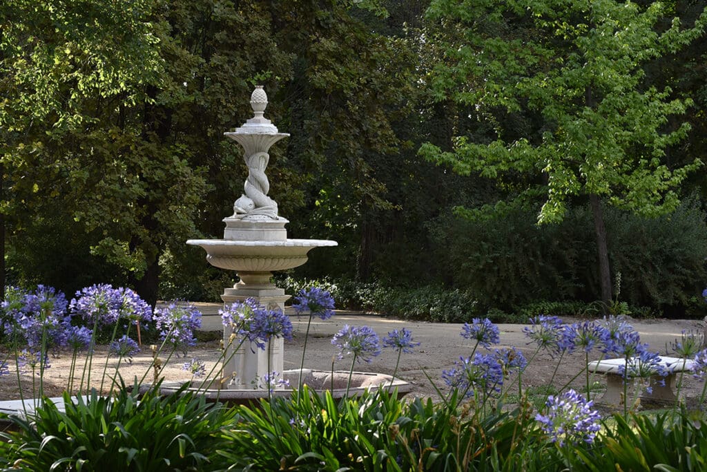 El parque de 22 hectáreas, que rodea la casona, fue diseñado por el paisajista francés Guillaume Renner, quien, inspirado en los estilos francés e inglés, buscó crear “un pequeño museo” al aire libre, con avenidas ornamentadas, senderos sinuosos, cuerpos de agua y una rica variedad de árboles centenarios, que se extienden hasta la ribera del río Maipo. Un entorno natural no solo complementa la arquitectura de la casona, sino que ofrece una experiencia paisajística única.