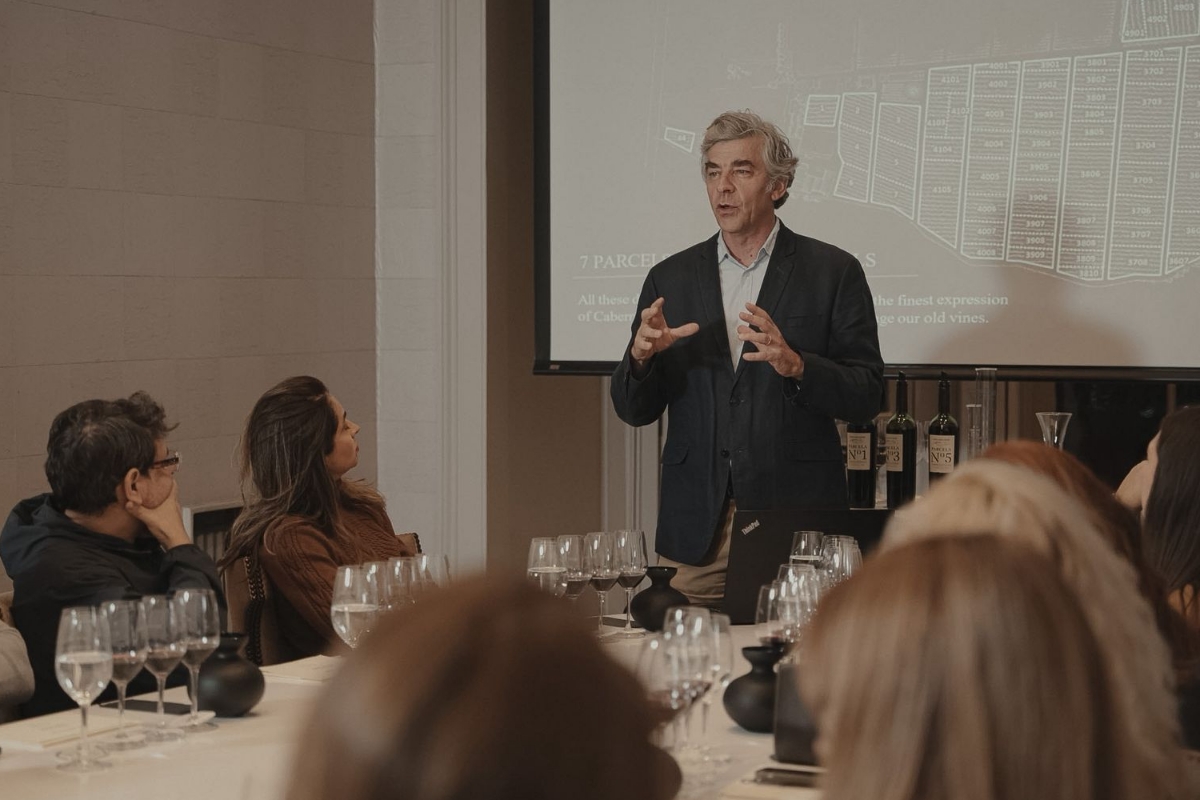 Posteriormente, la experiencia continuó en Pirque, en Casa Don Melchor, la histórica residencia de verano de la familia Concha y Toro. Allí, los asistentes degustaron, junto a Enrique Tirado, tres parcelas emblemáticas del viñedo, junto a la cosecha vigente de este prestigioso Cabernet Sauvignon. Además, recorrieron la Sala de Colección de Don Melchor, que resguarda todas las añadas desde la primera cosecha.