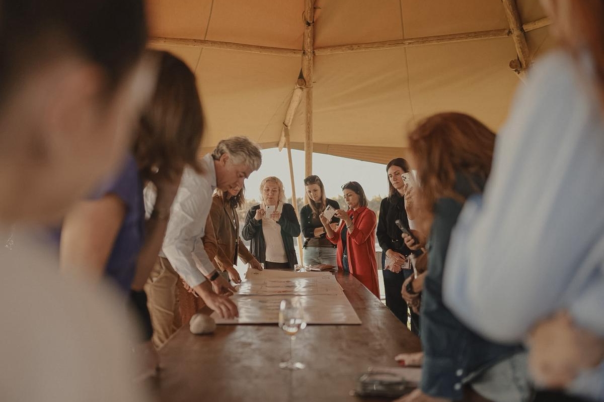 La jornada comenzó en el Viñedo Don Melchor, donde el CEO y Director Técnico presentó las características excepcionales de este terroir único, así como los pilares que han sostenido el éxito de la marca a lo largo de cuatro décadas. En este mismo lugar, los asistentes participaron en una experiencia de cosecha en hileras específicas del Viñedo Solar, un innovador proyecto plantado en 2018, orientado a investigar la mejor orientación y densidad de plantación de las vides en esta apelación específica, con el objetivo de extraer el máximo potencial y la personalidad del Cabernet Sauvignon de Puente Alto.