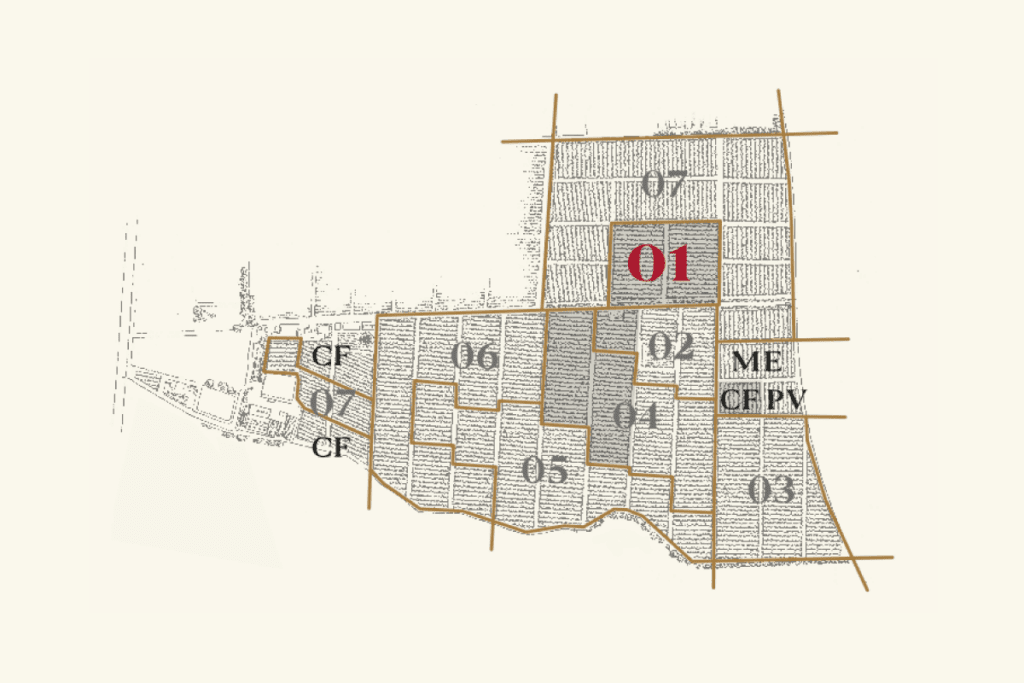 La Parcela #01, fue plantada en 1979 con selección masal prefilóxera traída a fines del siglo XIX y en pie franco. Representa el núcleo más profundo y auténtico del legado de Viña Don Melchor, ya que de esta parcela se seleccionaron las 3.000 plantas que dieron origen a lo que hoy conocemos como la selección masal prefilóxera de Don Melchor.
