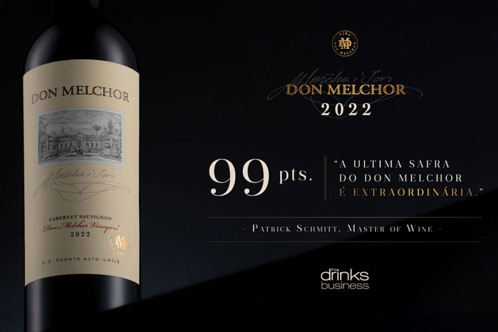 Na edição de setembro da prestigiosa revista britânica The Drinks Business, foi lançado o relatório “Chile Tasting”, uma avaliação abrangente dos vinhos chilenos conduzida pelo Master of Wine Patrick Schmitt. Neste relátorio, Don Melchor foi consagrado, com sua safra 2022, como o melhor avaliado, ao atingir 99 pontos, a maior pontuação do relatório, reafirmando mais uma vez sua liderança como um dos Cabernet Sauvignon mais premiados e reconhecidos globalmente.